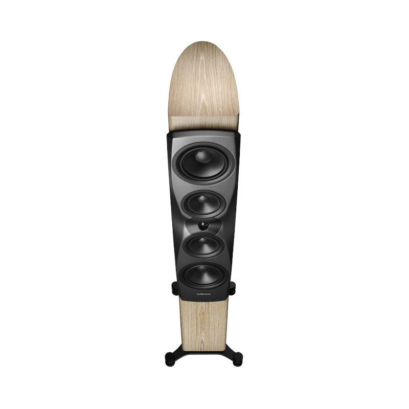 Wie schon bei diesem mittlerweile legendären Lautsprecher handelt es sich auch hier um ein Drei-Wege-Design mit zwei Tief- und zwei Mitteltönern. Sie ist meisterlich konstruiert. Die Ausführung ist auch visuell atemberaubend. Und sie leistet absolut Erstaunliches. Mit Hilfe der DDC-Technologie (Dynaudio Directivity Control“) wird die Schallabstrahlung so gesteuert, dass Reflexionen an Boden und Decke vermieden werden. Weitere Leistungsmerkmale sind der Esotar-Hochtöner und MSP-Tieftöner.